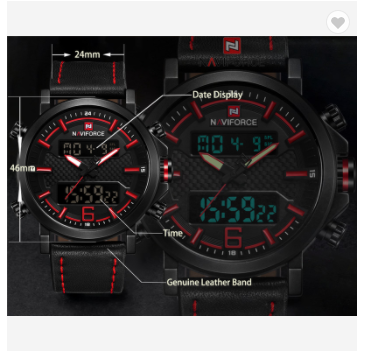 Be the first to review “NAVIFORCE 9135 BRB Men’s Sports Watches Luxury Brand Leather Band Waterproof Quartz WristWatch Male LED Digital Analog Clock”
