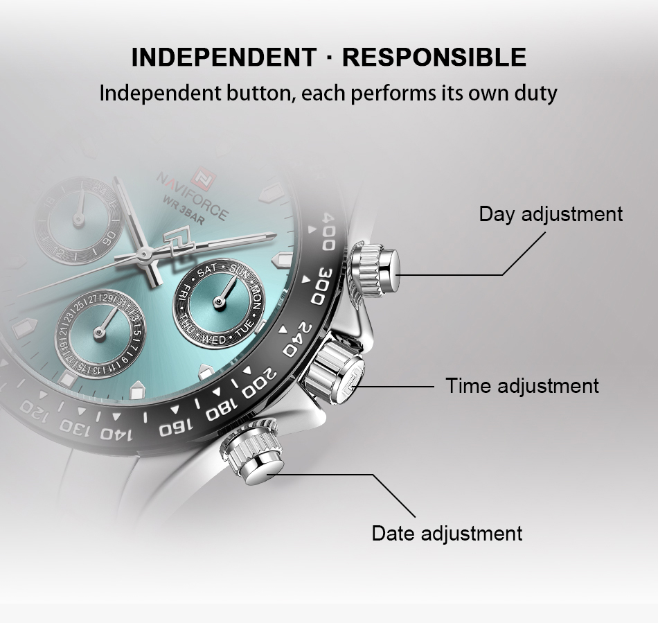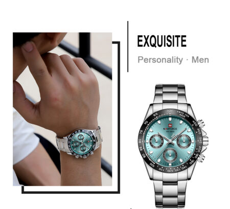 NAVIFORCE 9193 SBBE Men 3ATM Waterproof Watches 24 Hour Date Week Quartz Wrist Watches Stainless Steel unisex Relogio